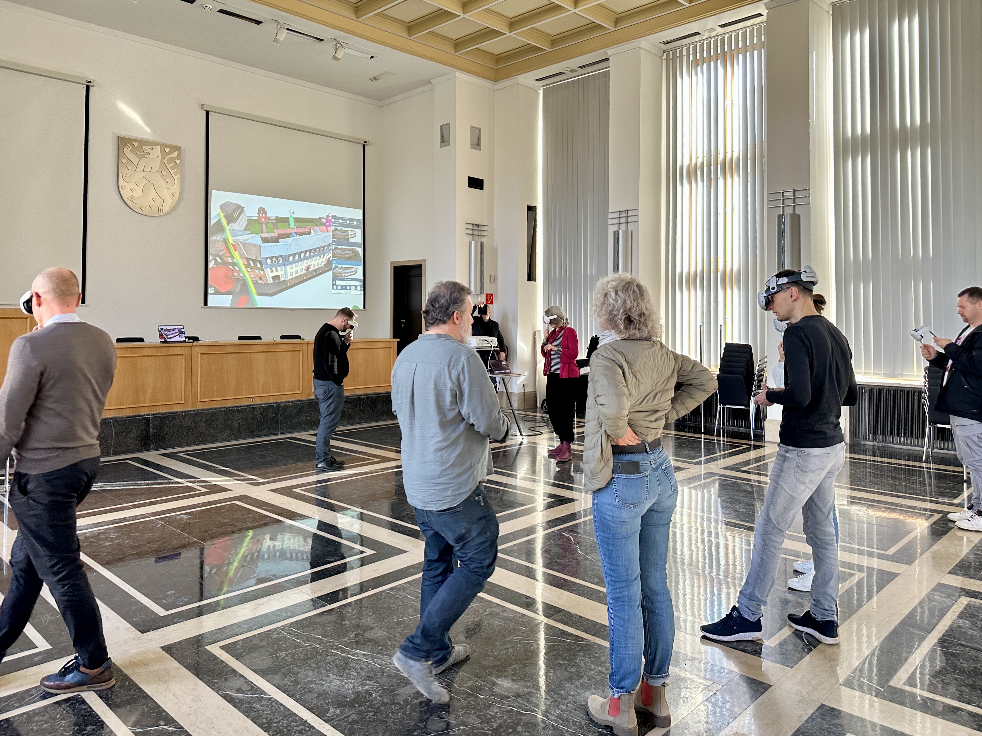 Gemeinsam mit Consensive GmbH haben wir einen kleinen Workshop für die Mitarbeitenden der Stadtverwaltung Weimar auf die Beine gestellt. Für interresierte aus dem Tiefbauamt sowie dem Stadtentwicklungsamt hat sich hier die Gelegenheit geboten, den Stand der Forschung persöhnlich zu erleben. Zentraler Inhalt war der VR-Rundgang, welcher auch den Kern unseres zweiten Workshops "Bewerten" darstellte.